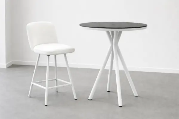 A menudo, lo menos es más, y esta mesa de bar es el ejemplo perfecto. Su estructura de 80 cm de diámetro ofrece la superficie ideal para que cuatro personas interactúen de forma cómoda. Al ser una mesa alta, fomenta una postura más dinámica y social, perfecta para reuniones informales. El diseño minimalista elimina elementos innecesarios, dejando una silueta limpia que no sobrecarga visualmente el espacio, algo vital en terrazas o balcones pequeños.