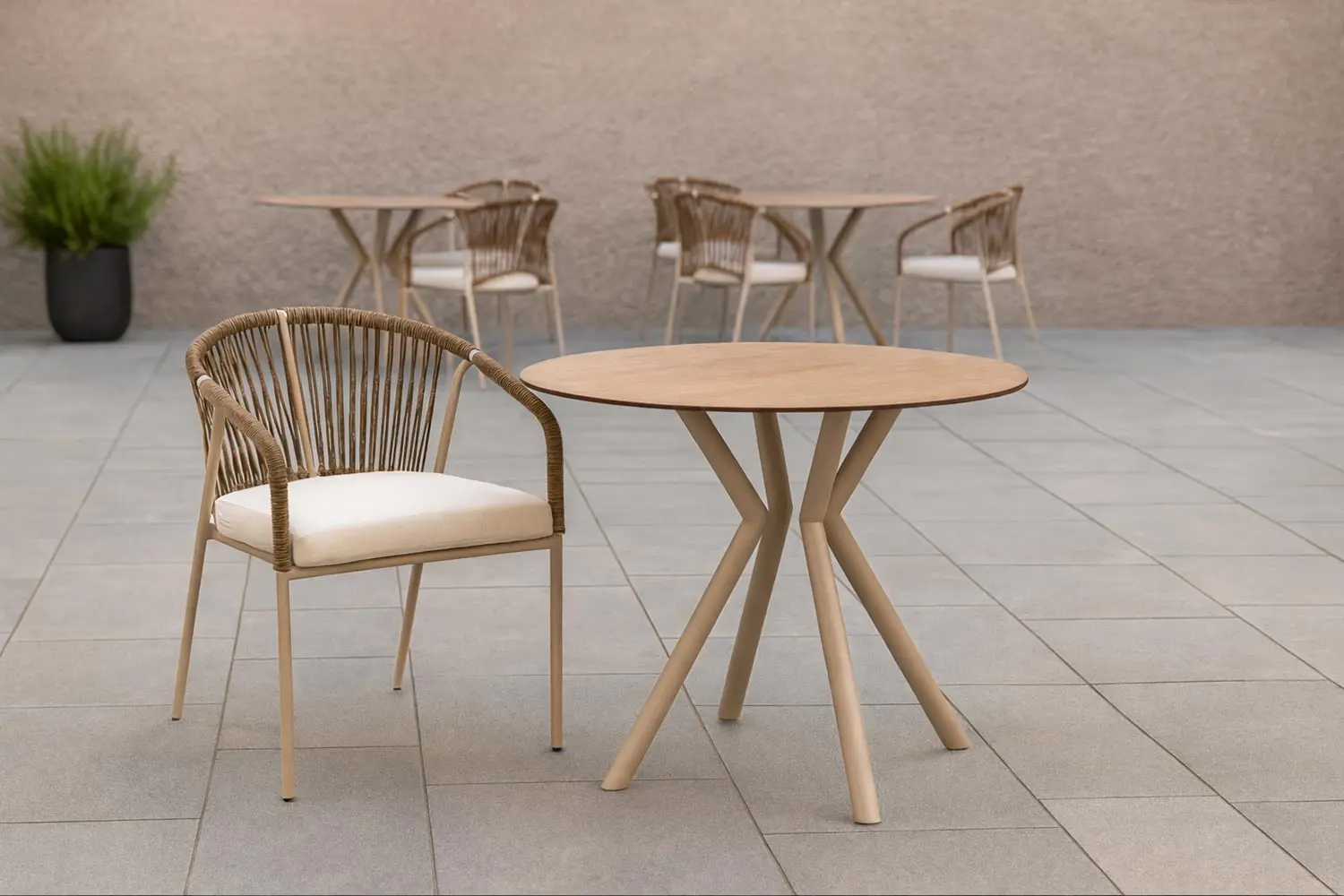 Este enfoque en el minimalismo funcional es lo que define a los muebles de lujo contemporáneo. Menos es más, y en este caso, ese “menos” se traduce en una mayor sensación de amplitud en tu terraza o salón. La ligereza visual de la mesa hace que el ambiente se sienta más despejado y fluido. Es la opción ideal si buscas crear un entorno de bienestar y confort donde cada elemento tiene su lugar y cumple una función estética y práctica a la vez. Además, al ser tan fácil de combinar con diferentes tipos de sillas, te da la libertad de jugar con la decoración y actualizar el look de tu casa siempre que quieras, manteniendo siempre ese estándar de calidad superior.