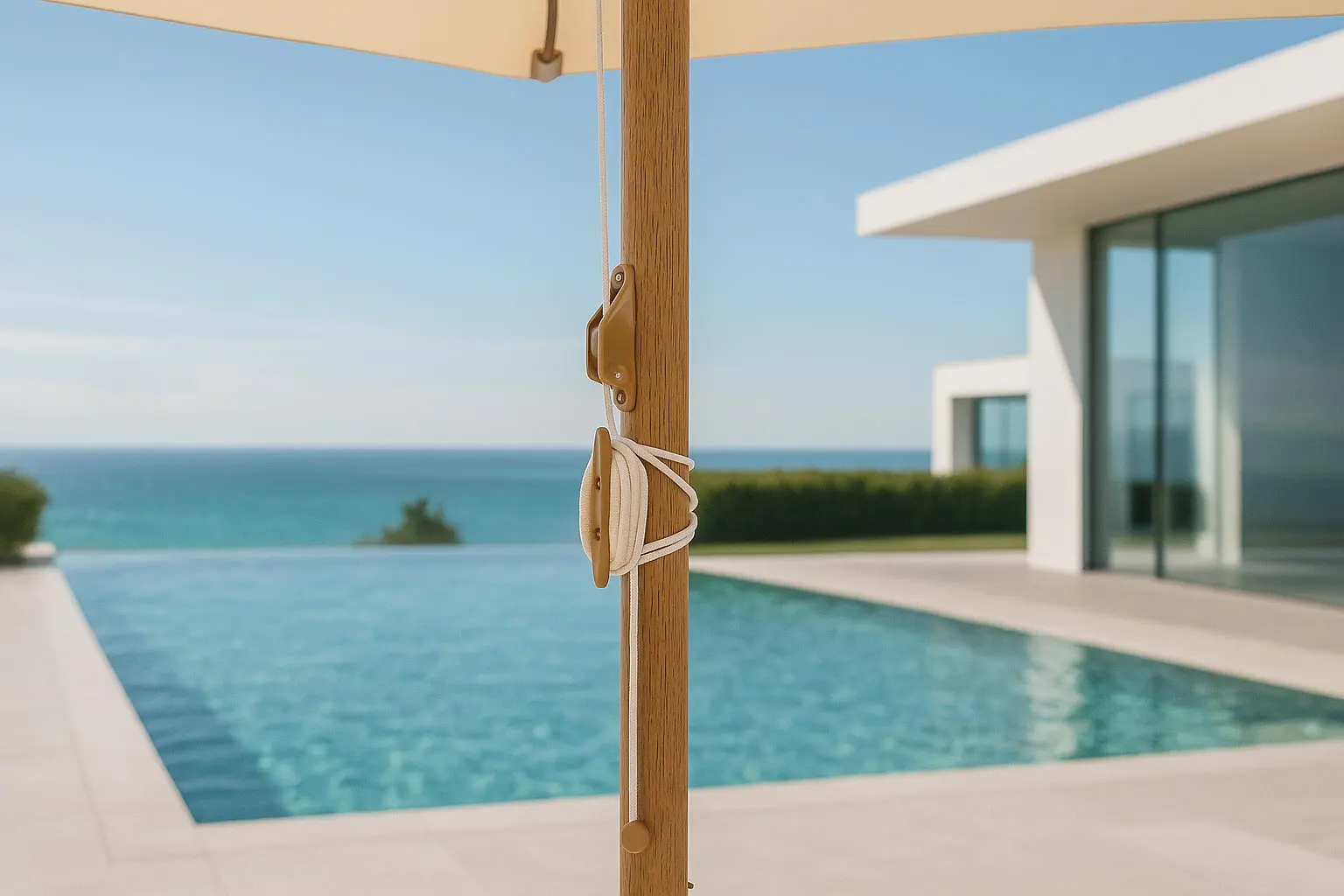 Olvídate de mecanismos complicados o manivelas que se bloquean. Aquí apostamos por la sencillez y la eficacia del sistema de apertura mediante poleas. Es un método clásico, fiable y muy estético que refuerza ese aire premium del conjunto. Con un gesto suave y fluido, podrás desplegar los 300 cm de sombra en cuestión de segundos, sin esfuerzos innecesarios. Es la prueba de que el buen diseño también consiste en hacer la vida más fácil.