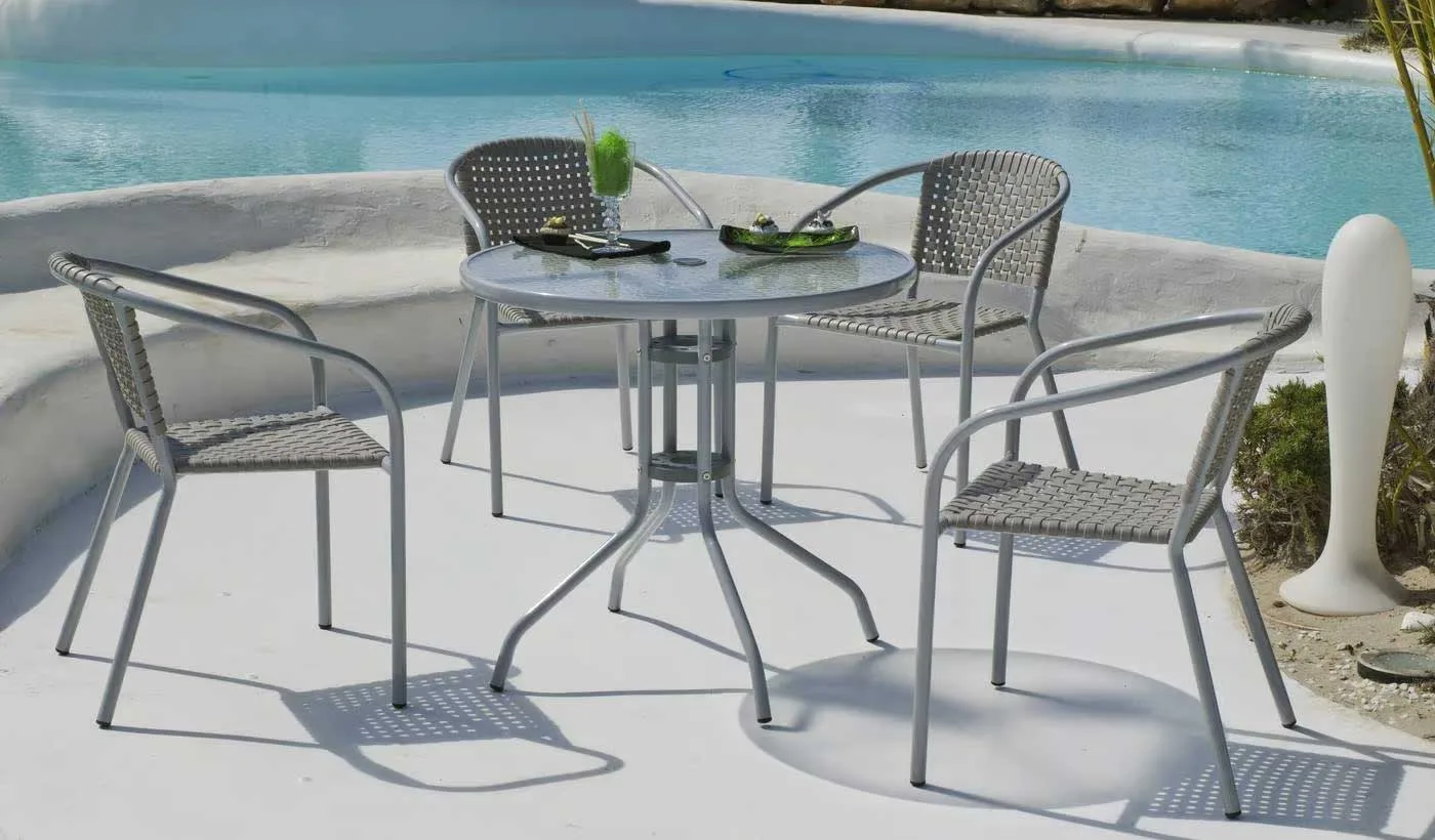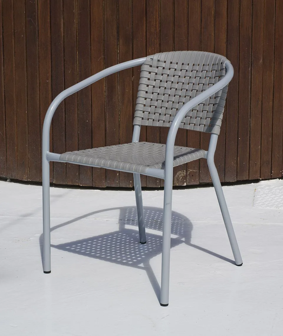 Nuestra silla de acero y resina gris para exterior está diseñada para brindarte el máximo confort mientras disfrutas del sol. Su asiento y respaldo están hechos de resina de alta calidad, resistente a los rayos UV y a la intemperie, lo que garantiza que no se desvanecerá ni se deformará con el tiempo. Además, su estructura de acero con recubrimiento en polvo proporciona una durabilidad excepcional y una apariencia elegante. Este modelo de silla se puede apilar para un almacenamiento eficiente cuando no está en uso.