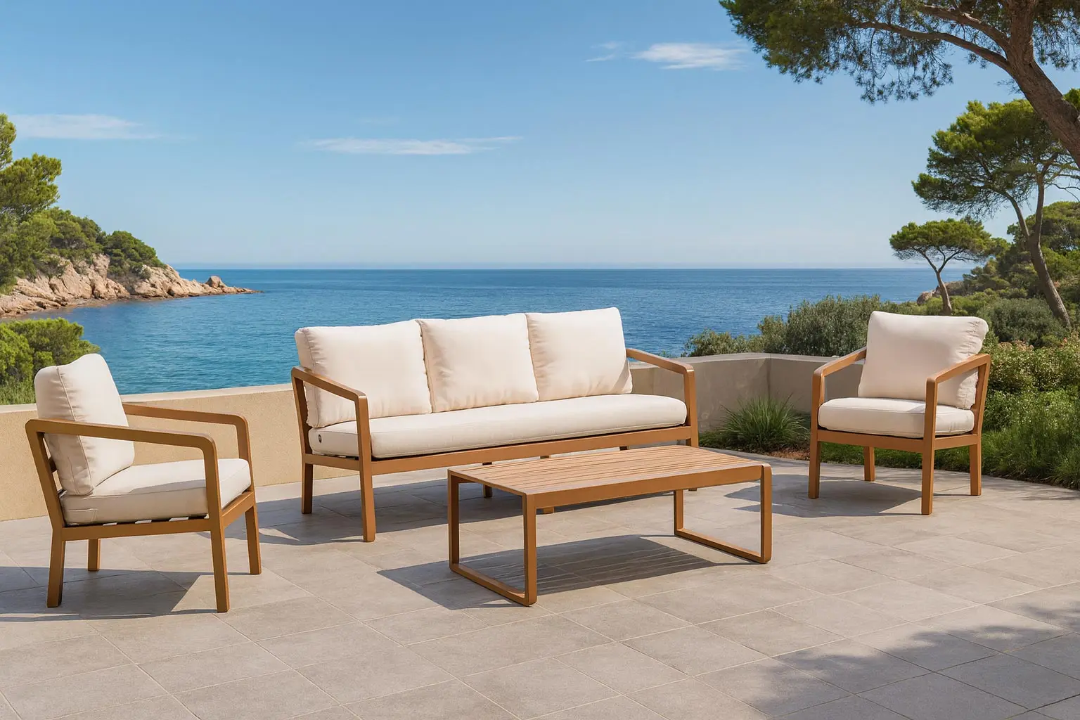 A menudo, el mobiliario de exterior peca de ser demasiado rígido o anguloso. Nosotros hemos roto ese molde con un estilo fluido donde los brazos del sofá terminan en formas redondeadas. Este detalle no es solo una cuestión de estética de vanguardia, sino una decisión práctica para tu tranquilidad.